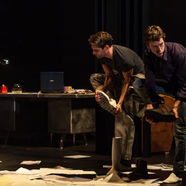 Avec une écriture travaillée en partie au plateau, elle navigue de l'intime au politique, du poétique au philosophique. Nous suivons, à travers l'histoire d'une famille, l'Histoire en grand. Et des fragments de celle-ci. Désormais tellement connectés au monde, nous en sommes encore très ignorants. Impossible de questionner la transmission, la dette, la tradition, sans revenir aux tragédies antiques, sans interroger les discours économiques actuels et enfin sans passer par les écrits de Michel Serres. Impossible également d'ignorer la question du temps. Dans un jeu corporel et poétique, les acteurs nous content cette tension entre passé et futur. On connaît le travail sensuel, subtil que mène Charlotte Lagrange. On retrouver cette fois encore ce besoin de parler du monde, le nôtre, avec un regard intime qui touche.