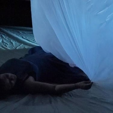 Pour traiter cela nous proposons un solo adapté à tout type de public. Une seule femme en scène inscrite dans un dispositif organique manipule les objets et les matières qui l’entourent. Elle entame un dialogue avec les personnages, les figures, les esprits et ce paysage mouvant, à la fois concret et mental.