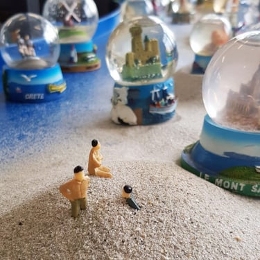 Les spectateur-ices sont installé-es autour d’une grande table en forme d'anneau qui pivote sur elle-même. Les manipulateur-ices qui se trouvent au centre, activent de petits décors. On découvre des paysages, des phénomènes atmosphériques, des jeux de matières, des éclats de lumière... L'aventure nous entraîne à travers l'espace et le temps au rythme des éléments.