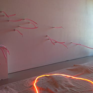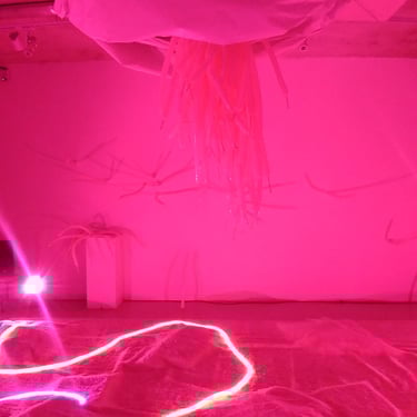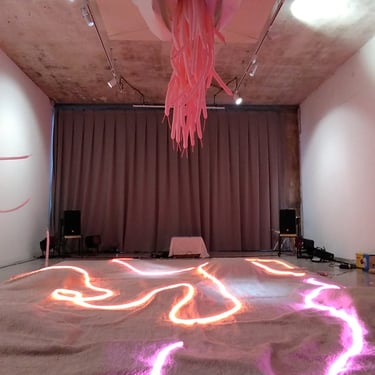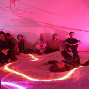 Réalisation d'une performance en public en duo avec le plasticien sonore Vincent Raude. Durant 20 min, le public choisi une position physique confortable et se laisse plonger dans un bain de lumière organique rose et orangé en perpétuel mouvement. Le dispositif quadriphonique diffuse en direct le son produit par Vincent Raude.